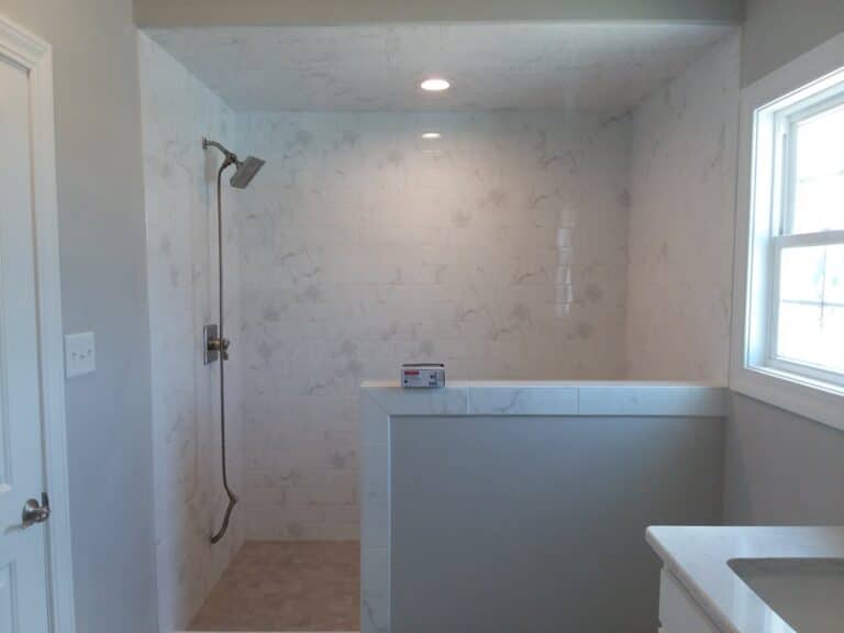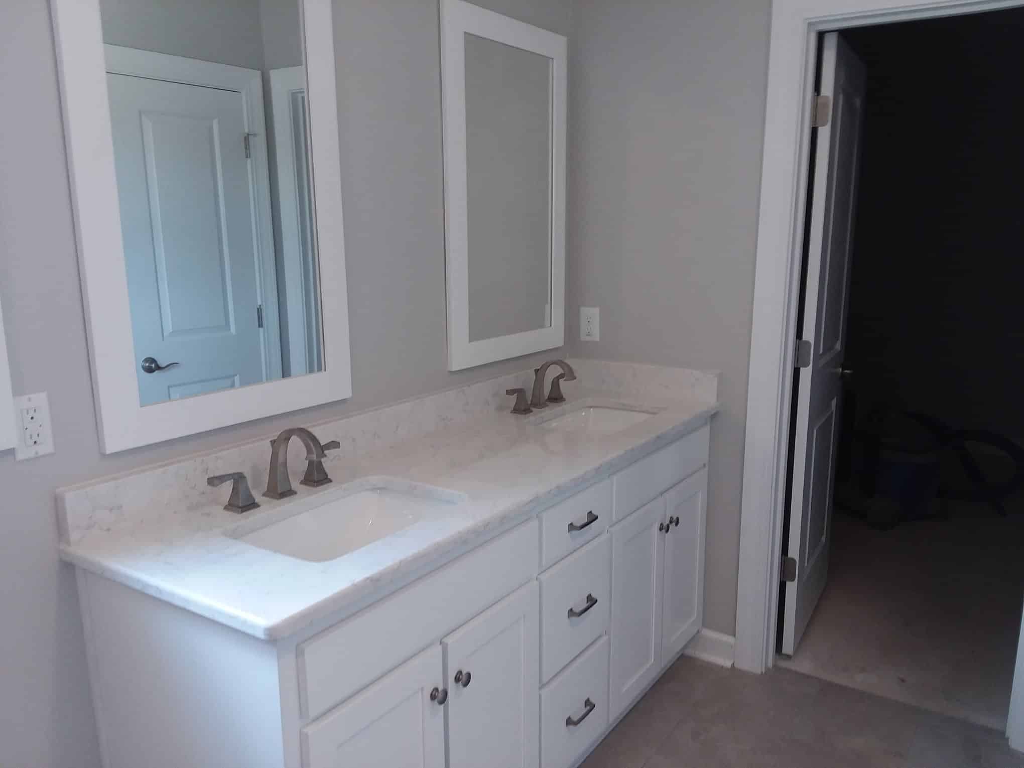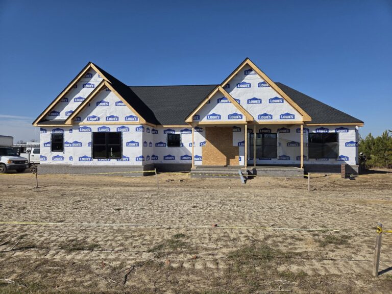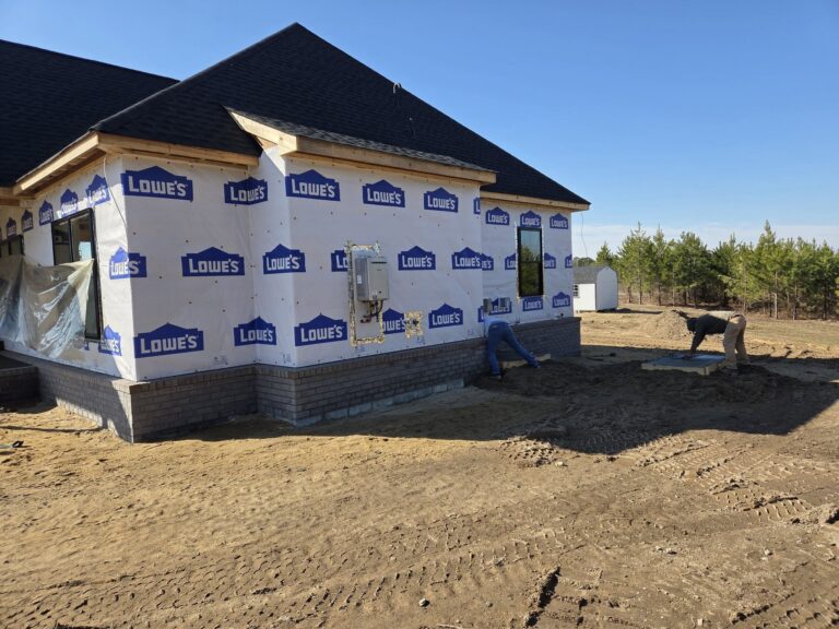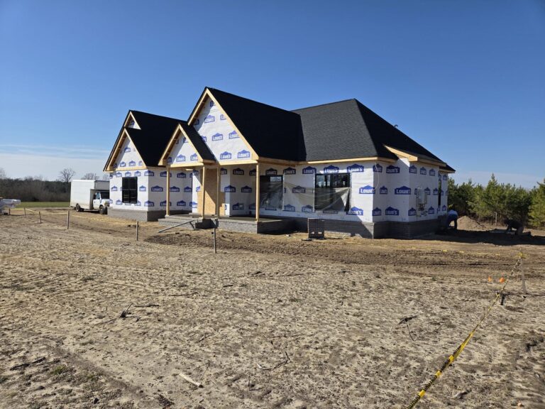 12|2|25 – Jernigan Residence plastering, interior trim and tile work is complete & painting is underway. Siding, outside trim & septic system is also complete. Cabinets to be installed next week and tops and sinks soon thereafter. Everything is on track for a late January 2026 move in !