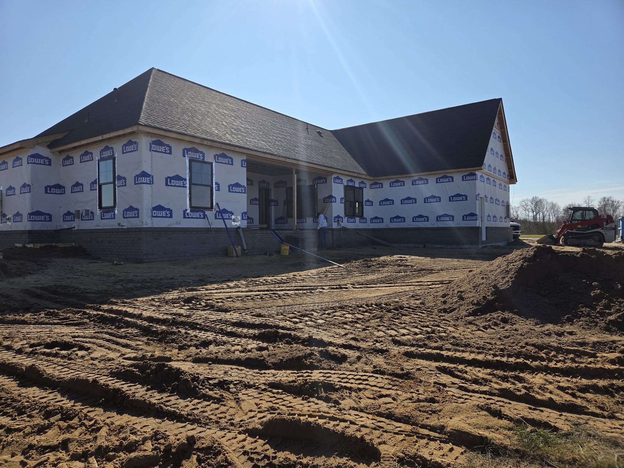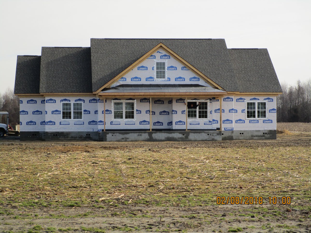 2|13|26 – Carr residence windows and doors installed, rough-ins complete, porch concrete is poured and insulation is scheduled to begin this coming Monday morning. Plastering and siding to start in about a week !!